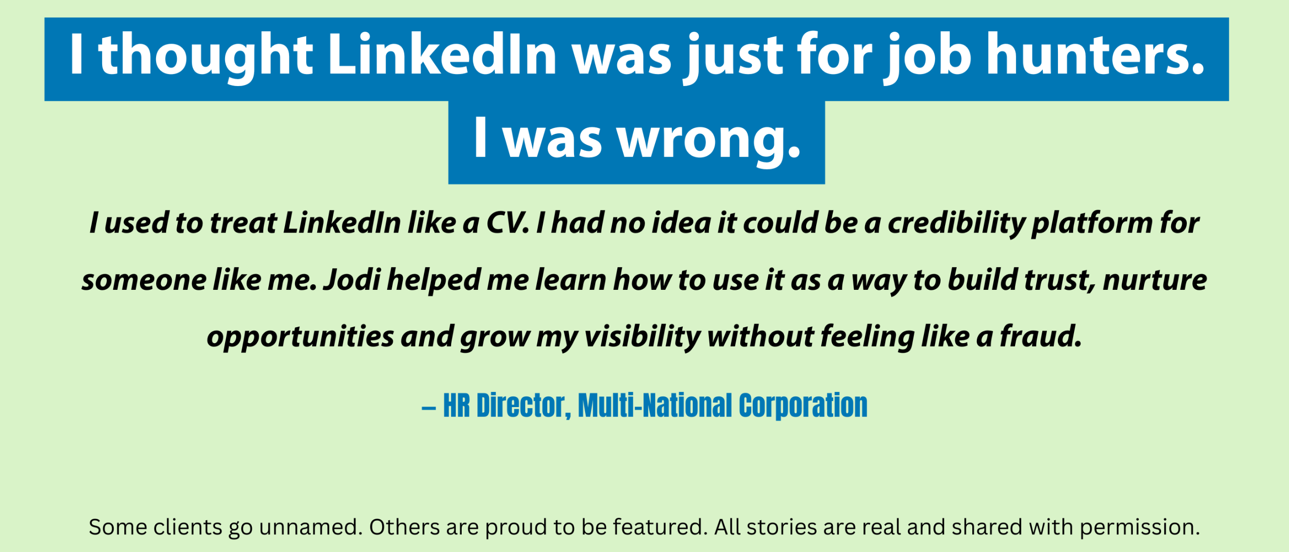 I work with high-performing professionals to build LinkedIn profiles that sound like them, reflect what they’ve done, and resonate with the people they want to reach.